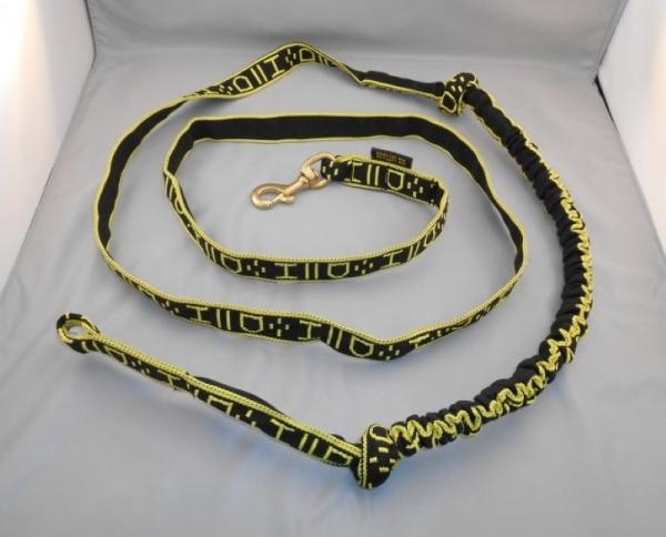 Dies ist eine haltbare Zugleine mit einem integriertem Ruckdämpfer, geeignet für Skijöring, Bikejöring und Dog-Scooting.