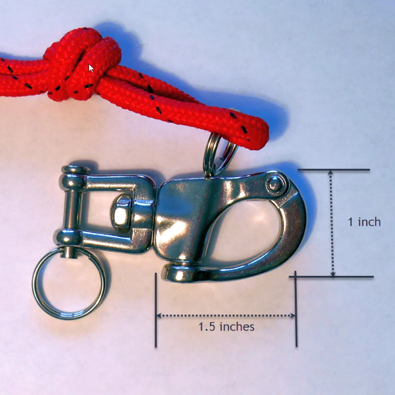 Ein kleiner Schnellverschluss/Panikverschluss mit Wirbel. Inklusive Zugseil.