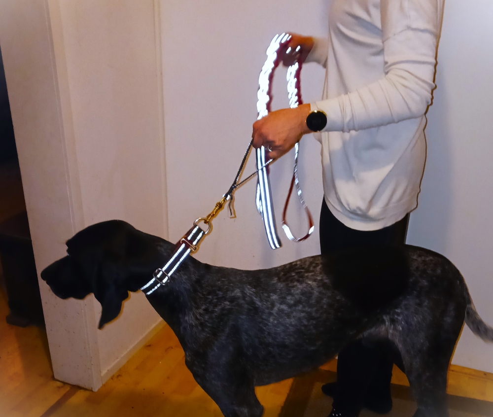 Die Kurzführ-Schlaufe am Kopf des Hundes macht es einfach, den Hund bei Bedarf nah zu halten.